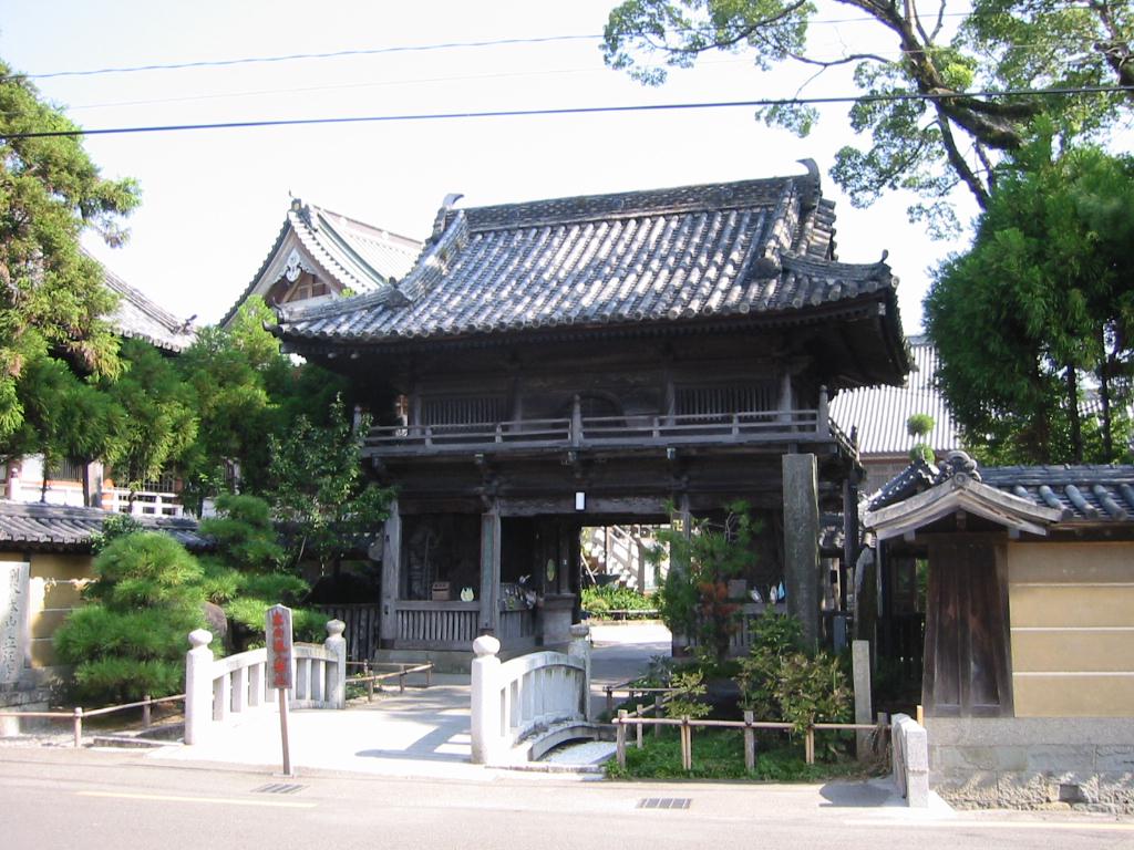 一日目最後の霊場・国分寺の門。聖武天皇勅願の文字が見える。