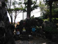 二十八番〜三十五番ぐらいの間は、信号も多く道がごちゃごちゃしているため、ちょっと した迷子に陥る事がたびたびあり、非常にやきもきさせられた。素早く方向転換して迷子を follow出来た時には「大師のお導きだ」と思いたくなるが、同伴のゲロ氏は「そんなの偶然だ」 と水を差して見事に気分を萎えさせてくれた。困った妹である。 それはさておき、第三十番善楽寺への道程もまた、ちょこちょこと迷いながらも何とか 到着するという状態だった。繰り返される迷子に、疲労が募る。善楽寺は、高知市内の ちょっと小高い丘の上、住宅地のど真ん中に建っている。道理で迷いやすいわけである。 白い敷砂が美しい、なんだか十七番井戸寺に雰囲気のよく似た親しみやすい感じのお寺だ。 ここで、『最新へんろ地図』を発見したので1000円で購入。迷子続きの私達にとって、 一筋の光明にも似た大変ありがたいアイテムだった。この地図には、普通の案内地図では ちょっと考えられないような細かな道標までが偏執病的に記載されている。 この地図は、これから先の旅で猛烈に役に立った。後でも何度も取りあげることになるが、 この地図は車遍路の人は見つけたら即ゲットだ!絶対に役に立つ! なお、この寺は、今回の旅行中、唯一写真を取り忘れたお寺になってしまった。なにせ、 この寺には門らしき門が無い。いままでのお寺は、どこも立派な門があって、それを目印に なってカメラを取り出していたのが仇になったらしい。以後は、門が無くてもカメラを取り出す ように気を付けるようにした。 次の竹林寺への道中も、高知市郊外を走るややこしい道のりが続く。幹線道路を通るので 車の台数も多く、混雑していてなかなか前に進まないしている。何種類かの地図と 照合しながら走るも、恐ろしい事に、どの地図とも道路が微妙に異なっている。 怯えながら暫く走り続けたが、気づいた時には竹林寺の入り口の上り坂に出会う事が出来た。 なんでだろう?この上り坂の途中、駐車場がぽこぽことたくさんあって紛らわしい。 登りが終わって下りに入り、アイスクリン屋さんがある所が正解。 |
