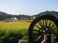 朝五時起きで乗り込んだ龍光寺の朝の風景。写真を拡大してみると鳥居が