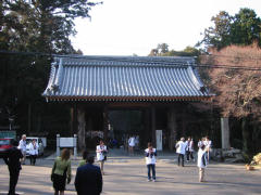 沢山の人で賑わう根香寺山門。すぐ脇には有名な牛鬼の像が建ってます。。